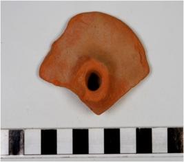 | Description / विवरण | A fragment of a terracotta wheel with hub of fine fabric. |