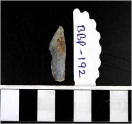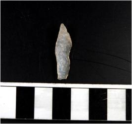 | Description / विवरण | A stone blade with single ridge on dorsal side, triangular cross section and sharp cutting edges. |