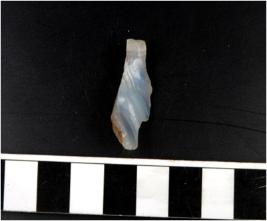 | Description / विवरण | A chalcedony blade with single ridge on dorsal side, triangular in section and sharp cutting edge. |