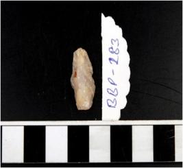 | Description / विवरण | A quartz blade with single ridge on dorsal side triangular in section and cutting edges. |