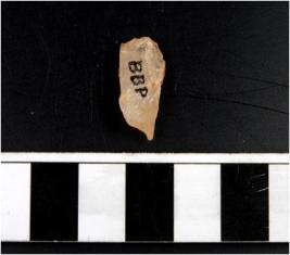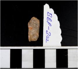 | Description / विवरण | A quartz flake with rough edges. |