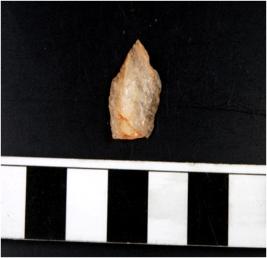 | Description / विवरण | A quartz blade with double ridge on dorsal side, tapering cross section and cutting edges. |