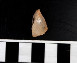 | Description / विवरण | A Quartz core with four blade chipped off on surface. |