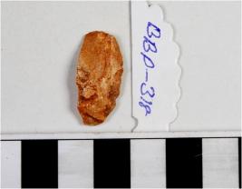 | Description / विवरण | A stone scraper with cutting edges, cortex and bulb on surface. |