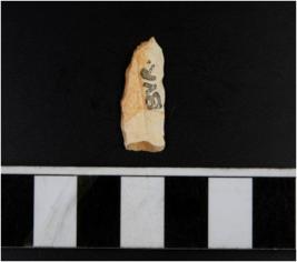 | Description / विवरण | A chert blade with single ridge on dorsal side, triangular cross-section and use-wear marks on cutting edges. |