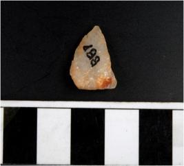 | Description / विवरण | A quartz flake with rough cutting edges. |