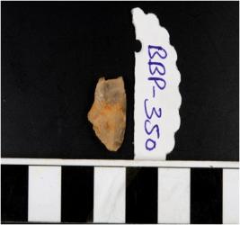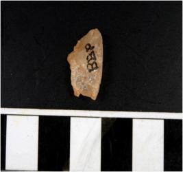 | Description / विवरण | A quartz flake with rough cutting edges. |