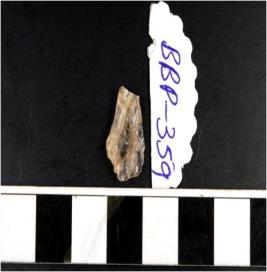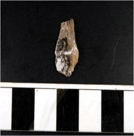 | Description / विवरण | A quartz flake with rough cutting edges. |