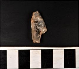 | Description / विवरण | A stone blade with single ridge on dorsal sides, triangular in cross section and sharp cutting edges. |
