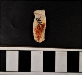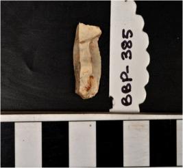 | Description / विवरण | A chert blade with double ridge on dorsal side, trapezoid cross-section and sharp cutting edges. |