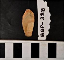 | Description / विवरण | A chert blade with single ridge on dorsal side and bulb on ventral side, triangular cross-section and sharp cutting edges. |