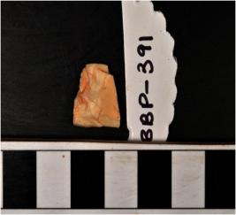 | Description / विवरण | A stone flake with rough edges and cortex on surface. |