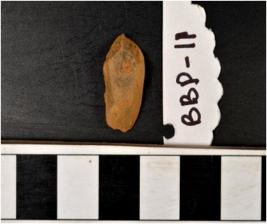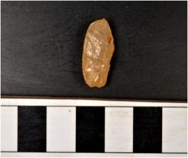 | Description / विवरण | A stone flake with rough edges and cortex on surface. |
