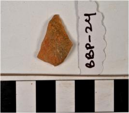 | Description / विवरण | A stone blade with single ridge on dorsal cross-section and sharp cutting edges. |