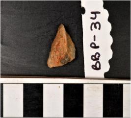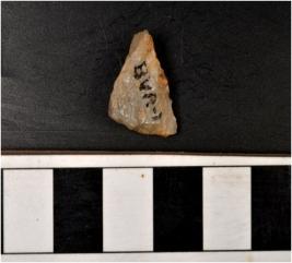 | Description / विवरण | A stone flake with rough edges and cortex on surface. |
