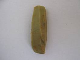| Description / विवरण | The flute core is small in dimension having one flat reverse side with cortex .The other side has several fluting marks.The colours is brownish green. |