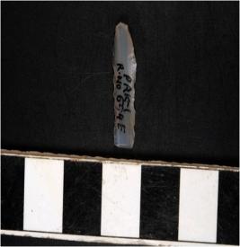 | Description / विवरण | A blade made on flake having flaking on upper sides thus giving double ridge with flaking on either side and left edges are blunt showing use marks. |