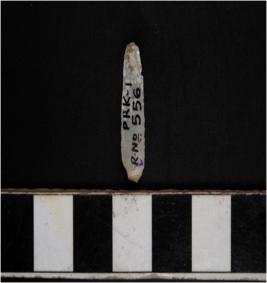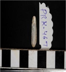 | Description / विवरण | A lunate having double ridge on dorsal side and retouching sides. |