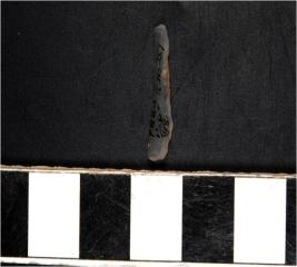 | Description / विवरण | A blade having a ridge on dorsal side left upper end broken and lower end has trunkated edges and right edge has very fine trimmed edges. |