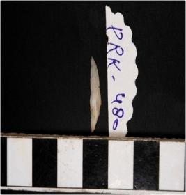 | Description / विवरण | A lunate having a point ends with a ridge on the upper side having retouching on the both side of the ridge. |