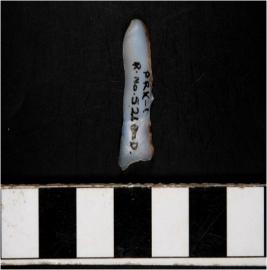 | Description / विवरण | A blade microlithic tool in geometrical formation having single ridge on dorsal side, blunt edges. |
