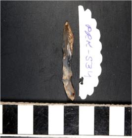 | Description / विवरण | A blade microlithic tool having single ridge on dorsal side, sharp cutting edges. |