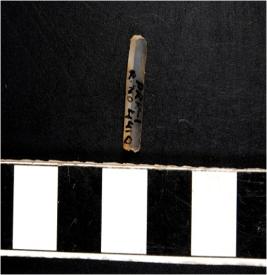 | Description / विवरण | A chalcedony blade with single ridge on dorsal side, triangular cross section and sharp cutting edges. |