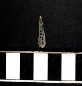 | Description / विवरण | A chalcedony blade with single ridge on dorsal side, triangular cross section and sharp cutting edges. |