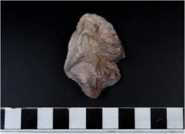 | Description / विवरण | A stone flake with cortex on surface and rough edge. |