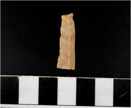 | Description / विवरण | A chert blade with single ridge, on dorsal side, triangular section and use-wear marks on cutting edges. |