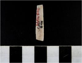 | Description / विवरण | A chert blade with single ridge on dorsal side, triangular cross section and sharp cutting edges. |