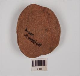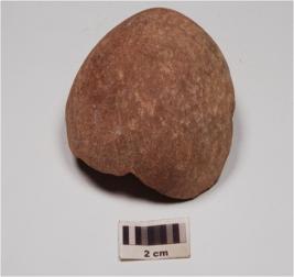| Description / विवरण | A fragment of a sling ball stone. |