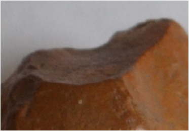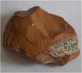 it is a palaeolithic stone tool. black in colour. flacking mark on it.