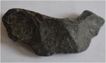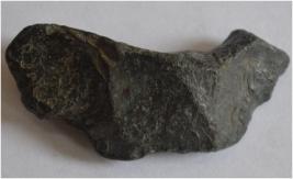it is a palaeolithic stone tool. black in colour. flacking mark on it.