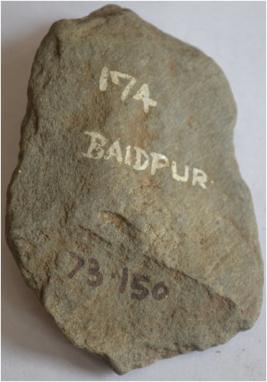 This is the Neolithic polished tool. made by sandstone. the lower part of a tool chipped out.