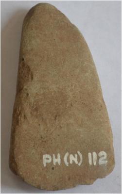 This is the Neolithic polished tool. Neolithic celt. made by sandstone. the lower part of a tool chipped out.