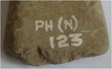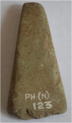 This is the Neolithic polished tool. Neolithic celt. made by sandstone. the lower part of a tool chipped out.