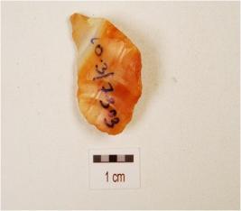 | Description / विवरण | A blade, made on chert with prominent mid ridge on dorsal side, triangular in section and use wear marks on cutting edge. |