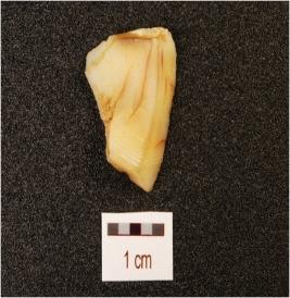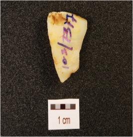 | Description / विवरण | A blade, made on chert with prominent mid ridge on dorsal side, triangular in section and use wear makrs on cutting edge. |