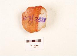 | Description / विवरण | A flake, made on carnelian with flake scars on dorsal side smooth ventral and orange in colour. |