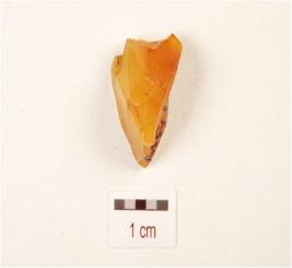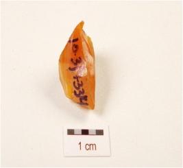 | Description / विवरण | A core, made on carnelian with five blade scars on surface, smooth surface and orange in colour. |