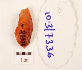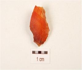 | Description / विवरण | A flake, made on carnelian with flake scars on dorsal side and orange in colour. |