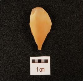 | Description / विवरण | A flake, made on chalcedony with flake scars on dorsal side and smooth ventral. |