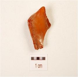 | Description / विवरण | A flake, made on carnelian with flake scars on dorsal side, use wear marks on edge orange in colour and triangular in section. |
