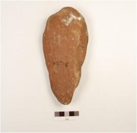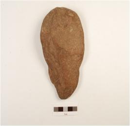 | Description / विवरण | Handaxe made on pebble quartzite, flake scars on both side, blunt cutting edge, butt and contex and plano-convex section. |