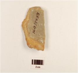 | Description / विवरण | A scraper made on quartzite, retouched and wavy cutting edge, plano-convex section, flake scars and contex surface and proximal bulb. |