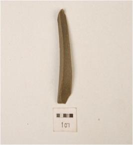 | Description / विवरण | Blade with a middle ridge dorsal with with bulb on ventral striking platform and sharp working edge. |