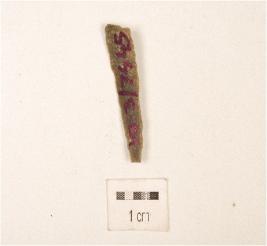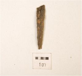 | Description / विवरण | Blade with one working edge, ridge on dorsal striking platform and retouches visible on one working edge. |