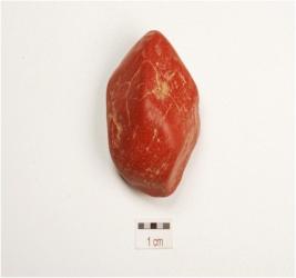 | Description / विवरण | A core made on jasper, plano convex in section and red in colour. |