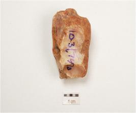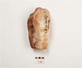 | Description / विवरण | A core on carnelian, prepared platform blade scars on one side and flake scars on the other side and bi-convex in section, |